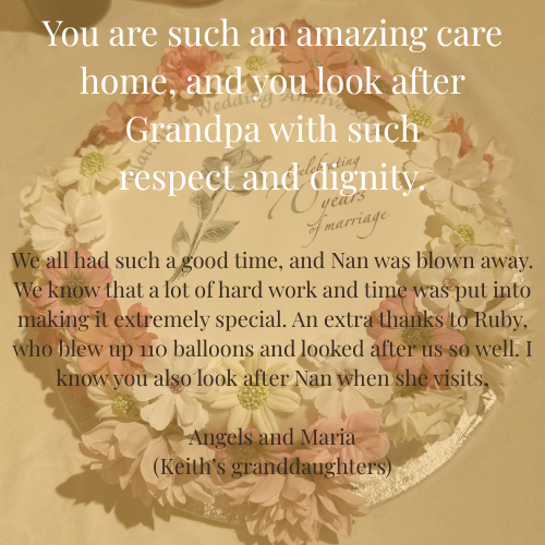 Moments like these are what make our home feel like family. We’re so honoured to care for such a wonderful couple and to have been part of this joyful celebration. Here’s to love, care, and 70 beautiful years together.